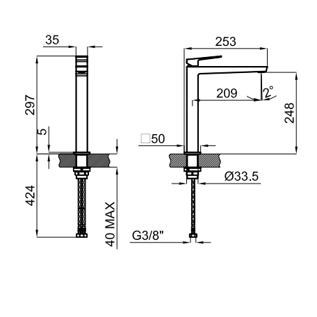 Однорычажный смеситель для раковины с высоким изливом и керамическим картриджем Ø 25 мм, подключение 3/8 ”, длина шлангов 360 мм. Без съемного сливного набора 1 1/4 ”. Регулируемый аэратор «plus». Расход 4,7 л / мин. при давлении 3 бара. Есть вариант в черном цвете - арт. 100263976 - цена: 359870 тг.