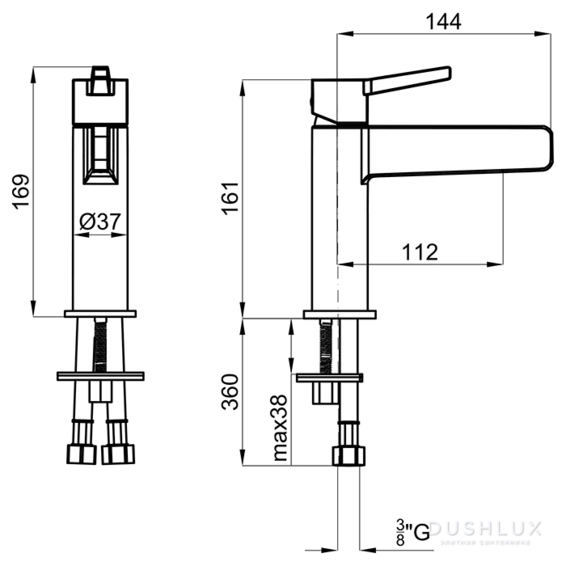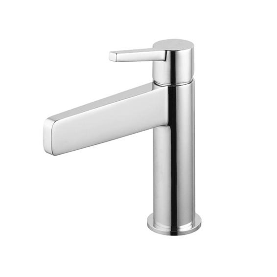 Однорычажный смеситель для раковины с керамическим картриджем ᴓ 25 мм. Без донного клапана. Подключение 3/8", длина шланга 400 мм и плоский аэратор. Пропускная способность при давлении 3 бара 5 л/мин.