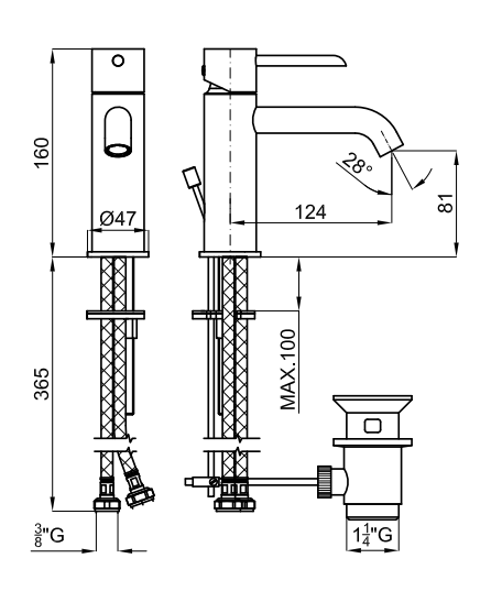 Однорычажный смеситель для раковины с керамическим картриджем ᴓ 35 мм. Подключение 3/8", длина шлангов 365 мм, с автоматическим клапаном слива и с аэратором "plus". Открытие на холодную. Пропускная способность при давлении 3 бара 5,34 л/мин. Есть вариант в черном цвете - арт. 100208350 - цена: 138330 тг.