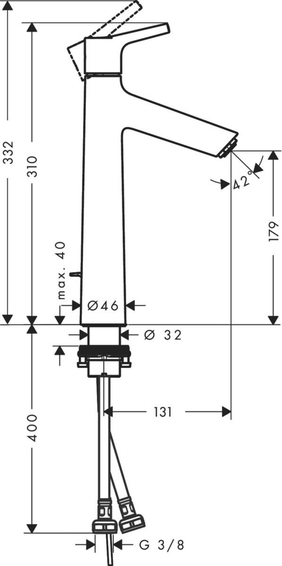 Однорычажный смеситель для раковины, слив/перелив, ComfortZone 190, выступ 131 мм, тип струи: обычная струя, максимальный расход воды при давлении 3 бара: 5 л/мин, керамический узел смешивания, регулируемое ограничение температуры, подходит для проточных водонагревателей, материал сливного набора: металл, вид соединения: соединительные шланги G ⅜, донный клапан, 1¼’.
