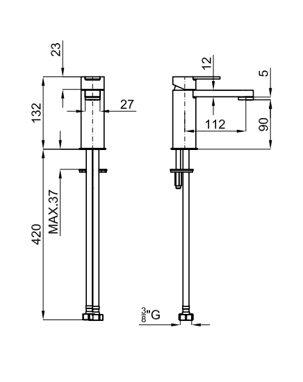 Высота смесителя (мм): 132