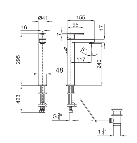 Высота смесителя (мм): 295
