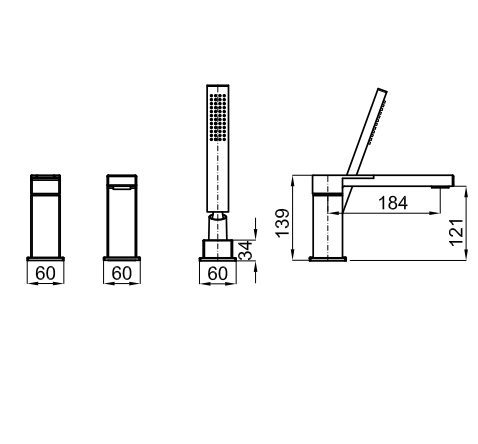 Внешняя часть смесителя на бортик ванны. Необходим PROJECT LINE - внутренний корпус смесителя, установка на ванне. Керамический картридж TRI-CONTROL ᴓ 40 мм со встроенным переключателем - арт. 100166061 - цена: 124020 тг.