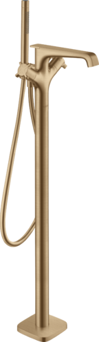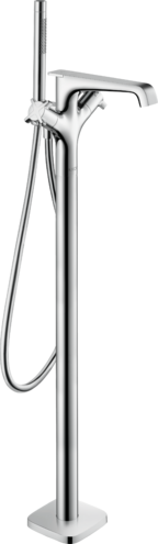 Смеситель для ванны состоит из напольного термостата для ванны, ручной душ-«палочка», шланг для душа, держатель для душа, выступ 190 мм, 2 потребителя, невозможно использование одновременно двумя потребителями, простое переключение между потребителями с помощью удобной ручки, тип струи смесителя: ламинарная струя, тип струи ручного душа: Rain, Mono, максимальный расход воды при давлении 3 бара: 19 л/мин, расход воды изливом на ванны при 3 барах: 19 л/мин, расход воды ручным душем при 3 барах: 15 л/мин, картридж термостата, с керамическим вентилем 180°, предохранительный ограничитель при 40°C, регулируемое ограничение температуры, клапан обратного тока воды, с автоматическим переключением в исходное положение, вид соединения: скрытая часть. Есть варианты в других цветах с полированной и шлифованной обработкой.