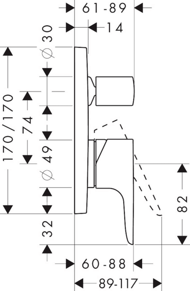 Смеситель для ванны, однорычажный, скрытого монтажа, максимальный расход воды при давлении 3 бара: 29 л/мин, расход воды изливом на ванны при 3 барах: 29 л/мин, расход воды ручным душем при 3 барах: 21 л/мин, мин. рабочее давление 1 бар, макс. рабочее давление: 10 бар, керамический узел смешивания, регулируемое ограничение температуры, дивертер с переключателем вакуумного типа, с шумопоглотителем, подходит для проточных водонагревателей.