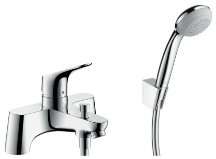 Смеситель для ванны, способ монтажа: на борт ванны, излив: фиксированный, ручной душ, держатель для душевой лейки: настенный, переключатель, количество монтажных отверстий: 2, материал: латунь, цвет: хром.