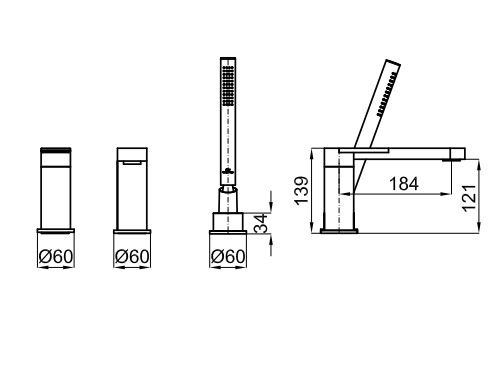 Внешняя часть смесителя на бортик ванны. Необходим PROJECT LINE - внутренний корпус смесителя, установка на ванне. Керамический картридж TRI-CONTROL ᴓ 40 мм со встроенным переключателем - арт. 100166061 - цена: 124020 тг.