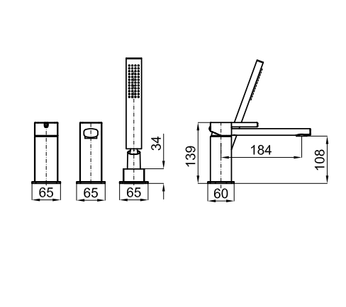 Внешняя часть смесителя на бортик ванны. Необходим PROJECT LINE - внутренний корпус смесителя, установка на ванну. Керамический картридж TRI-CONTROL ᴓ 40 мм со встроенным переключателем - арт. 100166061 - цена: 150520 тг.