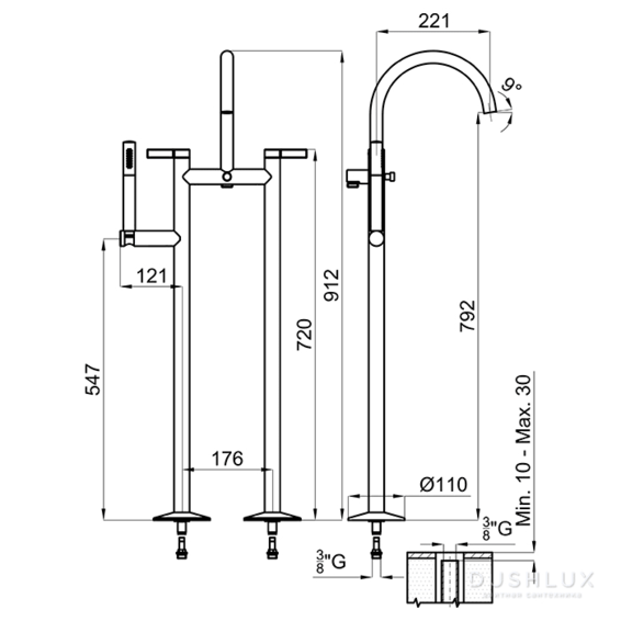 Напольный смеситель-моноблок для ванны/душа с гибким шлангом 150см и ручным душем. Подключение воды 3/8", автоматический переключатель и аэратор "plus". Диаметры опорных площадок 110 мм. Есть вариант в цвете золото - арт. 100238535 - цена: 1626040 тг.
