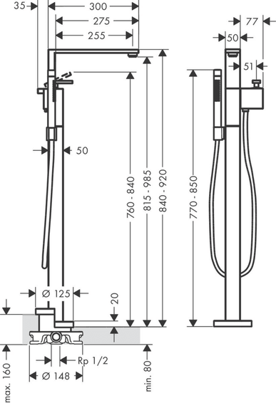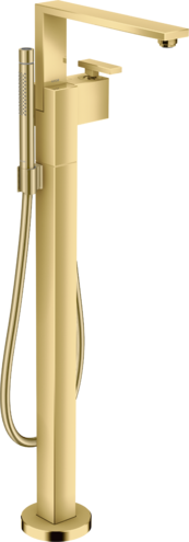 Смеситель для ванны однорычажный напольный состоит из однорычажного смесителя для ванны напольный, ручного душа с дубинкой, душевого шланга, держателя для душа, выступ 255 мм, тип подключения: базовый комплект, смеситель распылительного типа: обычный распылитель, ручной душ с типом струи: Rain, Mono, максимальный расход при давлении 3 бара: 23 л / мин, расход для излива на ванну при 3 барах: 23 л / мин, расход ручного душа при 3 барах: 13 л / мин, мин. рабочее давление: 1 бар, макс. рабочее давление: 5 бар, керамический картридж, ограничение температуры регулируемое, дивертер с автоматическим возвратом в исходное положение, обратный клапан, подходит для проточных водонагревателей, размер подключения: DN15. Есть варианты в других цветах: - полированное красное золото - арт. 46440300 - полированный черный хром - арт. 46440330 - полированное золото - арт. 46440990