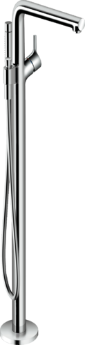 Cмеситель для ванны напольный, ручной душ-«палочка», шланг для душа, держатель для душа, выступ 245 мм, вид соединения: скрытая часть, тип струи смесителя: обычная струя, тип струи ручного душа: Rain, MonoRain, максимальный расход воды при давлении 3 бара: 20 л/мин, керамический узел смешивания, дивертер с переключателем вакуумного типа, клапан обратного тока воды.