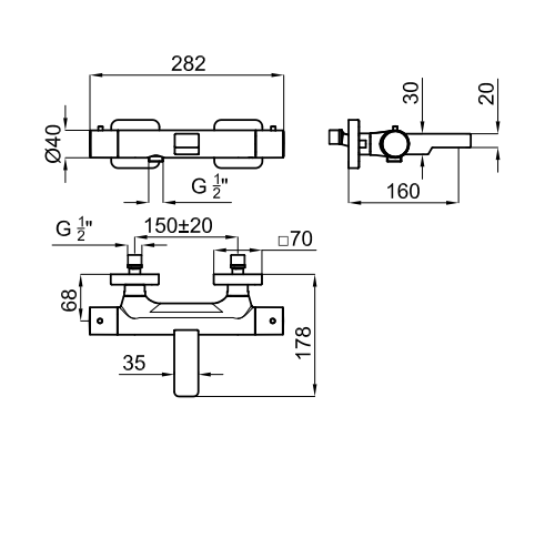 Наружный смеситель с термостатом для ванны/душа с элементом покрытия из воска. Подключение 1/2",регулирующий переключатель давления и аэратор "plus". Включает обратный клапан и предохранитель на 38 ⁰С. Расстояние между выходами 150+/-20 мм. Пропускная способность при давлении 3 бара: ванна - 18 л/мин и душ - 16 л/мин.