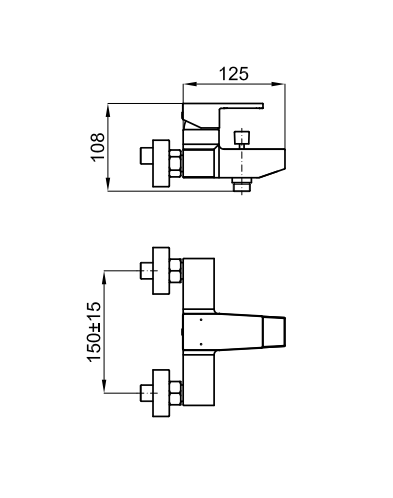Наружный однорычажный смеситель для ванны/душа с керамическим картриджем ᴓ 35 мм. Подключение 1/2", расстояние между выходами 150+/-15 мм. Полуавтомвтический переключатель и аэратор "plus". Пропускная способность при давлении 3 бара: душ - 14,37 л/мин и ванна - 20,1 л/мин.