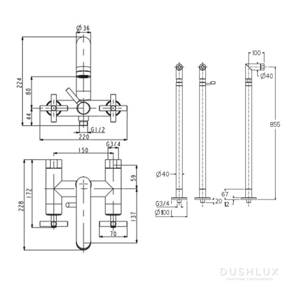 Высота смесителя (мм): 855