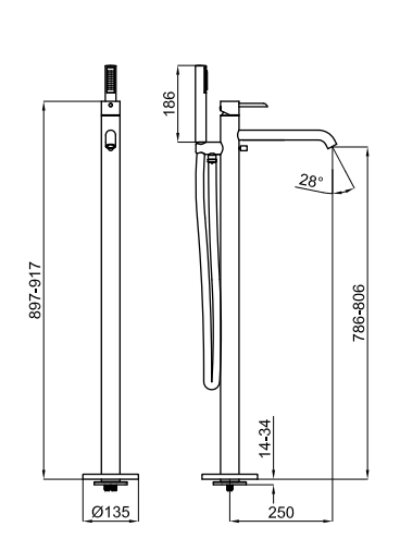 Высота смесителя (мм): 917