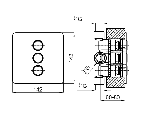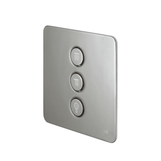 Смеситель скрытого монтажа с тремя выходами. Включает встроенный корпус и наружные части. Подводы воды 3/4", выходы - 1/2". Пропускная способность верхнего и нижнего выходов при давлении 3 бара - 23 л/мин. Поставляется с кнопками с пиктограммами ручной душ, дождь и каскад. В комплекте кнопка с пиктограммой центральная струя. Есть вариант ы черном цвете - арт. 100271996 - цена: 299980 тг. Дополнительно укомплектовывается душевой штангой с держателем ручного душа - арт. 100243839 - цена: 108650 тг. Или настенным держателем ручного душа с подводом воды - арт. 100243874 - цена: 74200 тг.