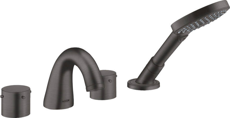 Смеситель на край ванны состоит из смесителя на край ванны, на 4 отверстия, ручного душа, шланга для душа, держателя для душа, выступ 140 мм, вид соединения: скрытая часть, тип струи смесителя: обычная струя, тип струи ручного душа: Rain, RainAir, WhirlAir, максимальное расстояние, на которое вытягивается ручной душ: 1,10 м, максимальный расход воды при давлении 3 бара: 22 л/мин, мин. рабочее давление 1 бар, макс. рабочее давление: 10 бар, керамический узел смешивания, дивертер с переключателем вакуумного типа, клапан обратного тока воды. Есть варианты в разных цветах с полированной и шлифованной обработкой.