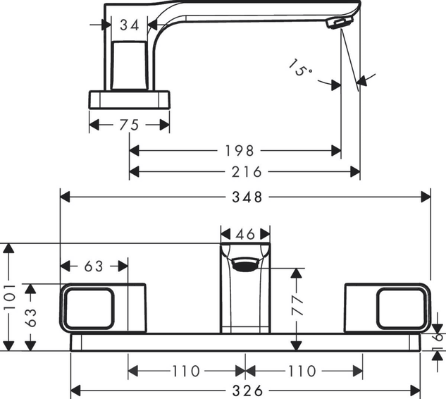 Высота смесителя (мм): 101