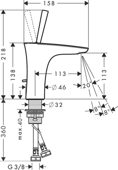 Однорычажный смеситель для раковины, слив/перелив, ComfortZone 110, выступ 113 мм, тип струи: ламинарная струя, регулируемый формирователь струи, максимальный расход воды при давлении 3 бара: 5 л/мин, керамический узел смешивания джойстикового типа, подходит для проточных водонагревателей, донный клапан, материал сливного набора: металл, вид соединения: соединительные шланги G ⅜. Есть вариант в бело-хромовом цвете - арт. 15074400
