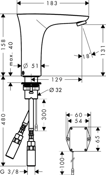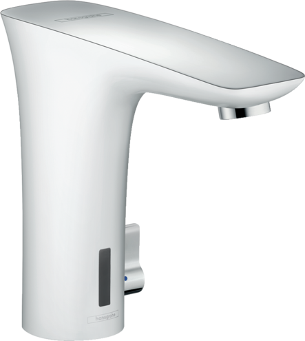 Однорычажный смеситель, слив/перелив, ComfortZone 130, выступ 129 мм, тип струи: обычная струя, максимальный расход воды при давлении 3 бара: 5 л/мин, аэратор с защитой от вандализма, регулируемое ограничение температуры, температура регулируется посредством бокового смешивающего рычага, клапан обратного тока воды подходит для проточных водонагревателей, инфракрасный электронный датчик, срабатывающий на приближение, автоматическая адаптация инфракрасного датчика к окружающим условиям, регулируемое оптическое расстояние для инфракрасного сенсора (2 положения), индикатор состояния батареи, питание от батареи 6 V (батарея включена в комплект поставки), частота циклов промывания: 24 часа, время промывки: 10 с, ручное прекращение подачи воды для чистки раковины, вид соединения: соединительные шланги G ⅜, грязеулавливающие фильтры в соединительных шлангах, функция может быть ограничена при использовании для раковин с возвышением или с очень широким краем раковины (> 75 мм), функциональное ограничение из-за большого расстояния. Есть вариант в бело-хромовом цвете - арт. 15170400