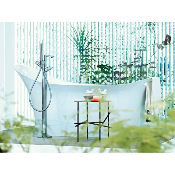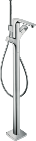 Термостат для ванны состоит из напольного термостата для ванны, ручного душа-«палочки», шланга для душа, держателя для душа, выступ 204 мм, 2 потребителя, тип струи смесителя: обычная струя, тип струи ручного душа: Rain, Mono, максимальный расход воды при давлении 3 бара: 21 л/мин, расход воды изливом на ванны при 3 барах: 21 л/мин, расход воды ручным душем при 3 барах: 14 л/мин, мин. рабочее давление: 1 бар, макс. рабочее давление: 10 бар, картридж термостата, запорный и переключающий вентиль, предохранительный ограничитель при 40°C, регулируемое ограничение температуры, клапан обратного тока воды, с автоматическим переключением в исходное положение, вид соединения: скрытая часть, грязеулавливающий фильтр входит в комплект поставки.