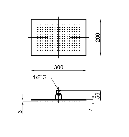 Верхний душ Recto30х20 см, с шаровым соединением.