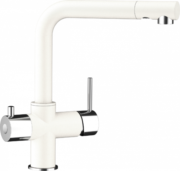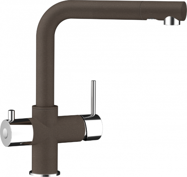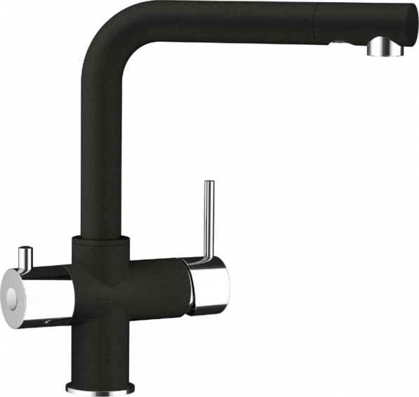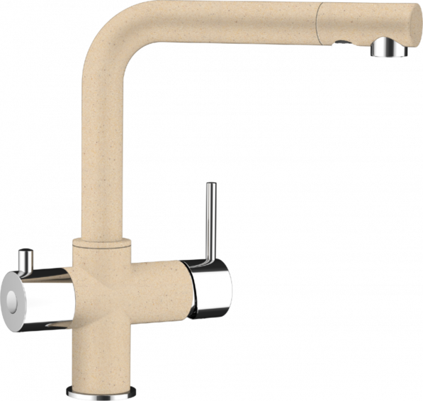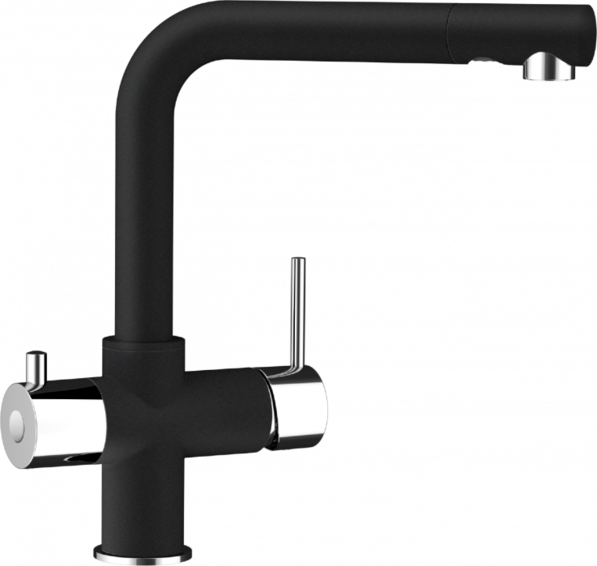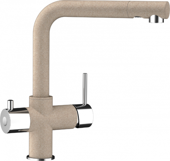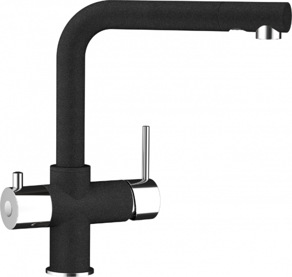 С выводом для питьевой воды. Вода после фильтра подается по отдельному водоводу и через отдельное отверстие влейке смесителя. Прекрасное цветовое сочетание с мойками из материала CRISTADUR® и CRISTALITE®. Легкое подключение гибкими шлангами длиной 400 мм с гайкой 3/8”. Отверстие для монтажа 35 мм.