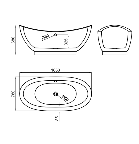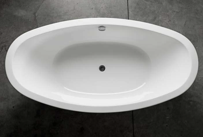Ванна без электронного оборудования, отдельностоящая, без смесителя, овальной формы, 165*78 см, цельнолитая, слив в центре, акриловая.