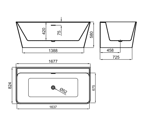 Ванна без электронного оборудования, отдельностоящая, полка, прямоугольная, 168*82 см, цельнолитая, слив в центре, акриловая. Дополнительно укомплектовывается сифоном - арт. 100158208 - цена: 4240 тг Есть вариант со сливом-переливом в черном матовом цвете - арт. 100282332 - цена: 4020580 тг