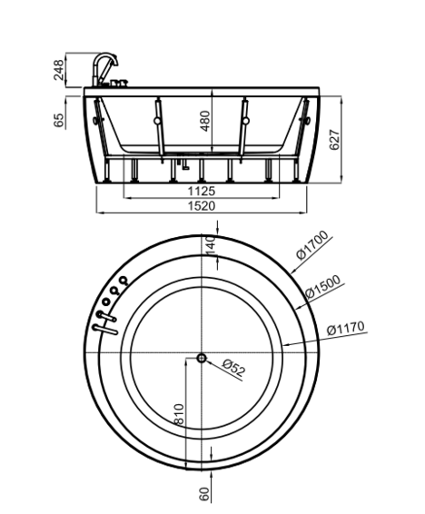 Ванна со скрытым гидромассажем, встроенная, без смесителя, круглая Ø170 см, версия с несущей рамой и панелью, слив в центре ванны, акрил, толщиной 5 мм. Есть вариант со смесителем - арт. 100215273 - цена: 4070930 тг Дополнительно укомплектовывается аксессуарами: - автоматический водослив L-110 + сифон водослив (для ванн без смесителя)– арт. 100080172 – цена: 38160 тг - подголовник белый– арт. 100166524 – цена: 54060 тг - подголовник белый – арт. 100056383 – цена: 140980 тг - подголовник серый – арт. 100056384 – цена: 140980 тг - подголовник черный – арт. 100056387 – цена: 140980 тг - подголовник короткий белый – арт. 100060780 – цена: 117660 тг - подголовник короткий серый – арт. 100060753 – цена: 117660 тг - подголовник короткий черный – арт. 100060767 – цена: 117660 тг - противокапельная система в ванне для ручного душа – арт. 250037038 – цена: 61480 тг - смотровое отверстие с решеткой для ванны – арт. 250021559 – цена: 234790 тг