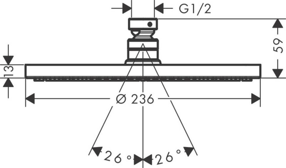 Верхний душ 240 1jet PowderRain размер душевого диска: 240 мм, тип струи: PowderRain, шарнирное соединение: регулируемый угол верхнего душа, максимальный расход воды при давлении 3 бара: 18 л/мин, расход воды PowderRain (при 3 барах): 18 л/мин, материал душевого диска: металл, съемный душевой диск для очистки, монтаж: потолок или стена, соединительная резьба G ½.