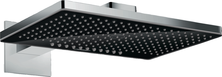 Верхний душ 460 2jet с держателем состоит из: верхнего душа, держателя верхнего душа, розетки, размер душевого диска: 466 x 300 мм, тип струи: Rain, RainStream, длина держателя для душа 461 мм, максимальный расход воды при давлении 3 бара: 18 л/мин, расход воды для струи Rain (при 3 бар): 18 л/мин, расход воды для струи RainStream (при 3 бар): 15 л/мин, 2 зоны распыления должны контролироваться 2-мя клапанами с 2-мя выходами, легкоочищаемый душевой диск, материал душевого диска: безопасное стекло, съемный душевой диск для очистки, съемный верхний душ для очистки, монтаж: стена, скрытый монтаж с помощью iBox Universal. Есть вариант в черно-хромовом цвете - арт. 24005600