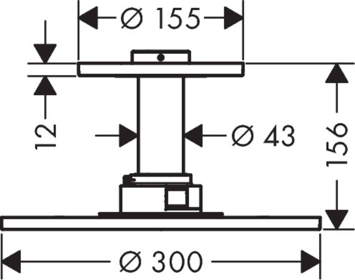 Верхний душ, размер душевого диска: 300 мм, тип струи: PowderRain, максимальный расход воды при 3 бар: 19 л/мин, расход воды PowderRain (при 3 барах): 19 л/мин, выдвигающиеся форсунки, материал душевого диска: металл, съемный верхний душ для очистки, ServiceCard с фильтром снимается для очистки, инструменты для демонтажа не требуются, металлическое потолочное подсоединение, длина потолочного подсоединения: 100 мм, монтаж: потолок.