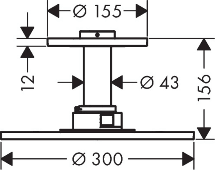 Верхний душ, размер душевого диска: 300 мм, тип струи: PowderRain, Intense PowderRain, максимальный расход воды при давлении 3 бара: 18 л/мин, расход воды в режиме Intense PowderRain (при 3 барах): 17 л/мин, расход воды PowderRain (при 3 барах): 18 л/мин, переключение на термостате Select, выдвигающиеся форсунки, материал душевого диска: металл, съемный верхний душ для очистки, ServiceCard с фильтром снимается для очистки, инструменты для демонтажа не требуются, металлическое потолочное подсоединение, длина потолочного подсоединения: 100 мм, монтаж: потолок.