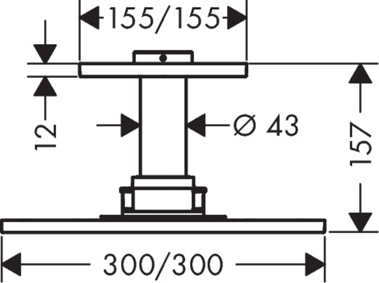 Верхний душ, размер душевого диска: 300 x 300 мм, тип струи: PowderRain, Intense PowderRain, максимальный расход воды при 3 бар: 18 л/мин, расход воды в режиме Intense PowderRain (при 3 барах): 17 л/мин, расход воды PowderRain (при 3 барах): 18 л/мин, переключение на термостате Select, выдвигающиеся форсунки, материал душевого диска: металл, съемный верхний душ для очистки, ServiceCard с фильтром снимается для очистки, инструменты для демонтажа не требуются, металлическое потолочное подсоединение, длина потолочного подсоединения: 100 мм, монтаж: потолок.