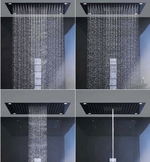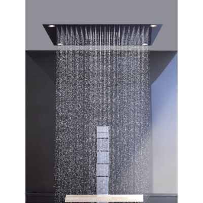 Верхний душ, размер душевого диска: 970 x 970 мм, тип струи: RainAir, обычная, ламинарная струя, максимальный расход воды при давлении 3 бара: 33,3 л/мин, расход воды для струи RainAir (при 3 бар): 20,6 л/мин, расход воды для обычной струи (при 3 бар): 33,3 л/мин, расход воды для ламинарной струи: 15,6 л/мин, управление по одному или в комбинации, управление тремя зонами струй осуществляется посредством трех вентилей или одного переключающего вентиля с тремя ответвлениями, зоны струй: Bodyzone - внешняя зона потолочного душа, Rainzone - внутренняя зона потолочного душа с функцией AirPower, ламинарная струя – Ø 17 мм, поверхность душевого диска: полированная нержавеющая сталь, рамка: сатинированная нержавеющая сталь, монтаж: потолок, со встроенным освещением, лампочка: LED, источник питания: 12.12 мм, трансформатор питания для скрытого монтажа 12 V. 18 мм, вход: 100 - 240 В AC / 50/60 Hz, выход: 12 V - DC, температура цвета: 2700 K, светлый цвет: alb cald, эффективность энергопотребления C, не подходит для проточных водонагревателей.
